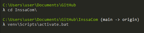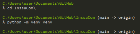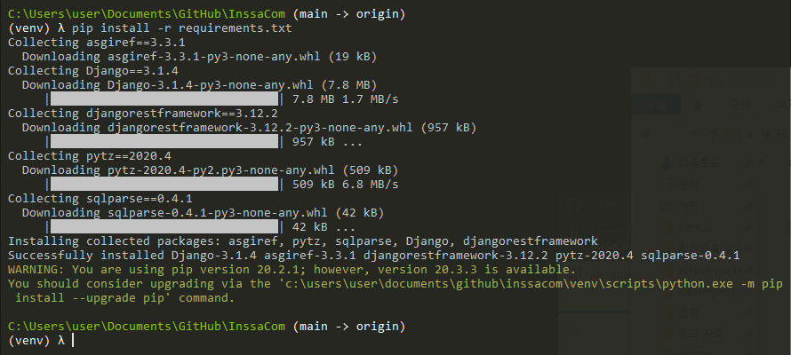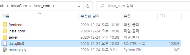 venv 가상 환경 상태에서, inssa_com 폴더로 이동한다.