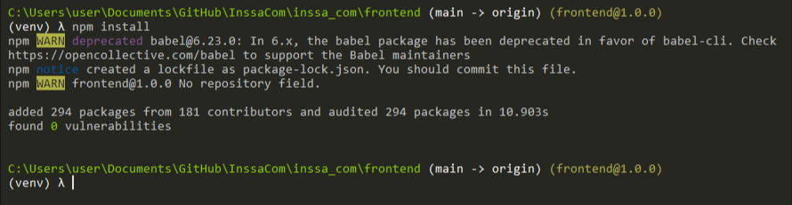 .gitignore에 venv를 포함하지 않도록 했기 때문에, 가상환경 이름은 venv로 통일한다.