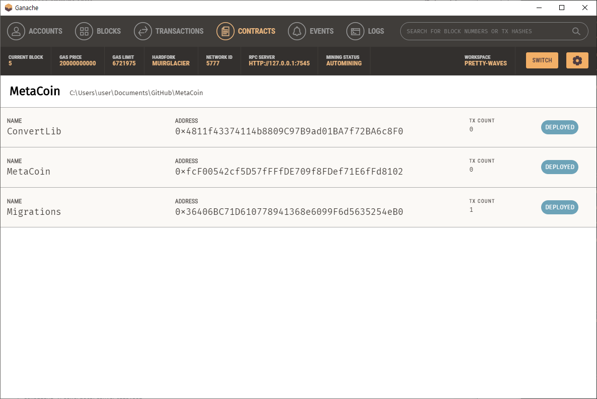 그럼 이렇게 address가 보이면서 migrate가 된걸 보인다.