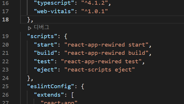 "scirpts"항목을 다음처럼 변경한다.